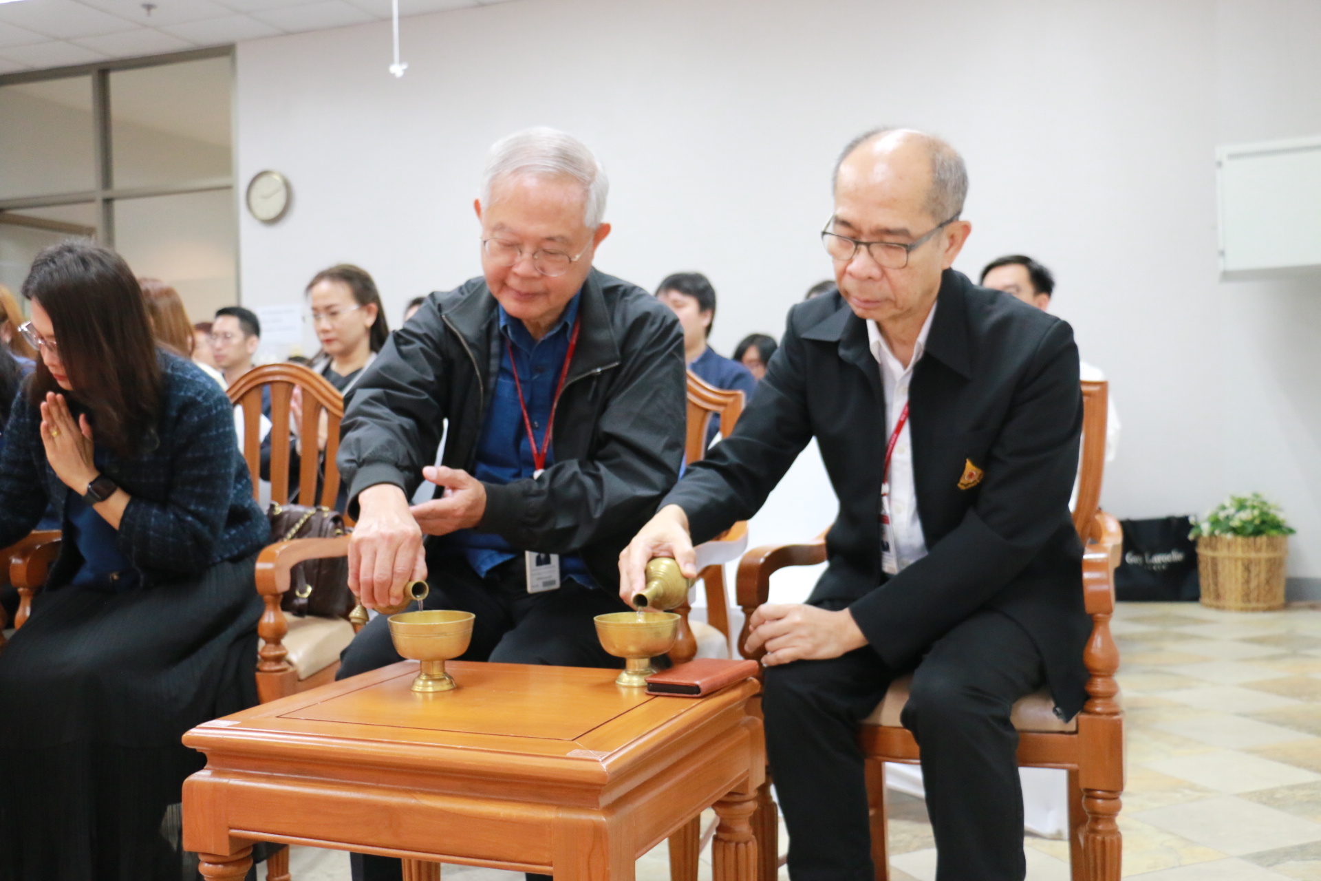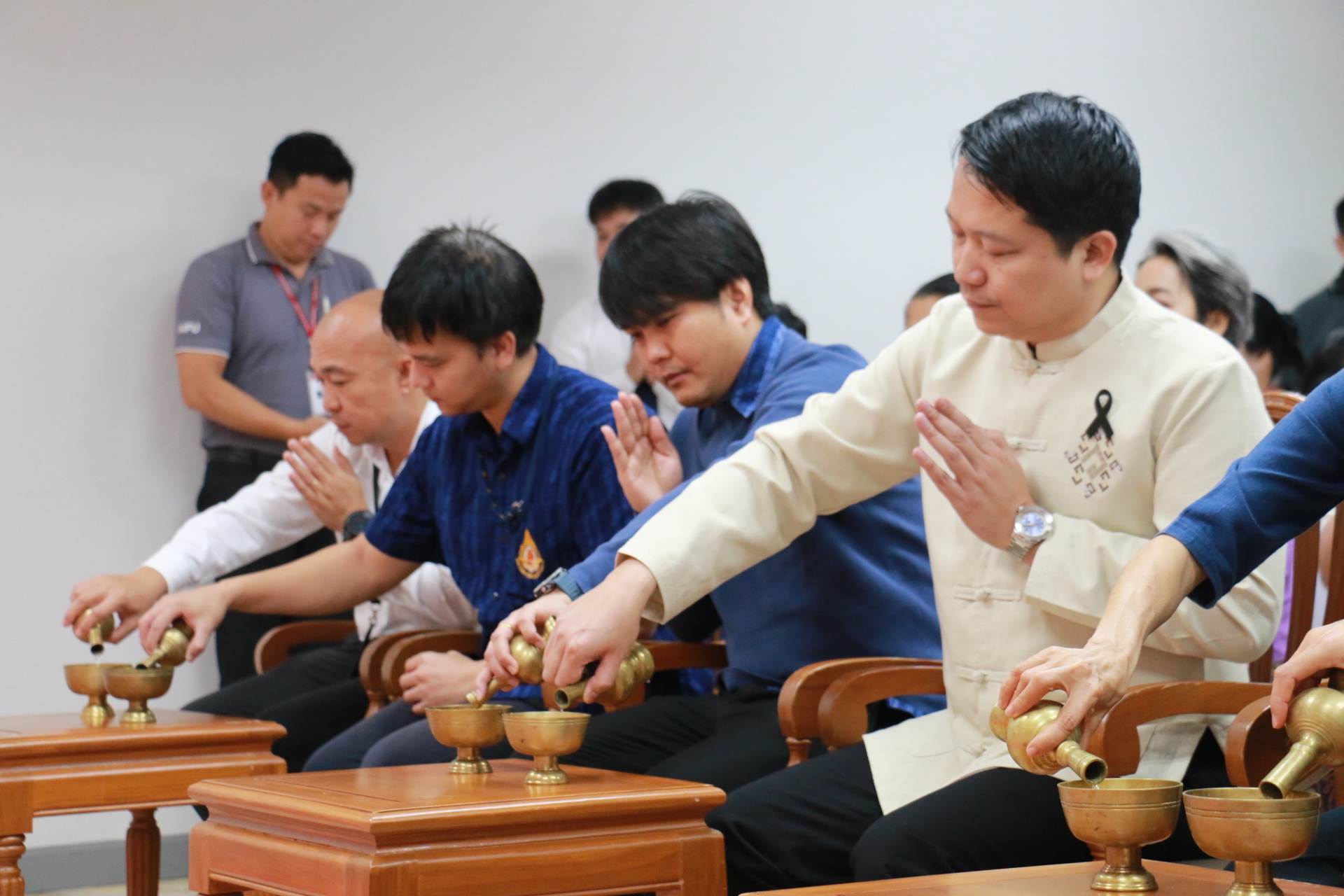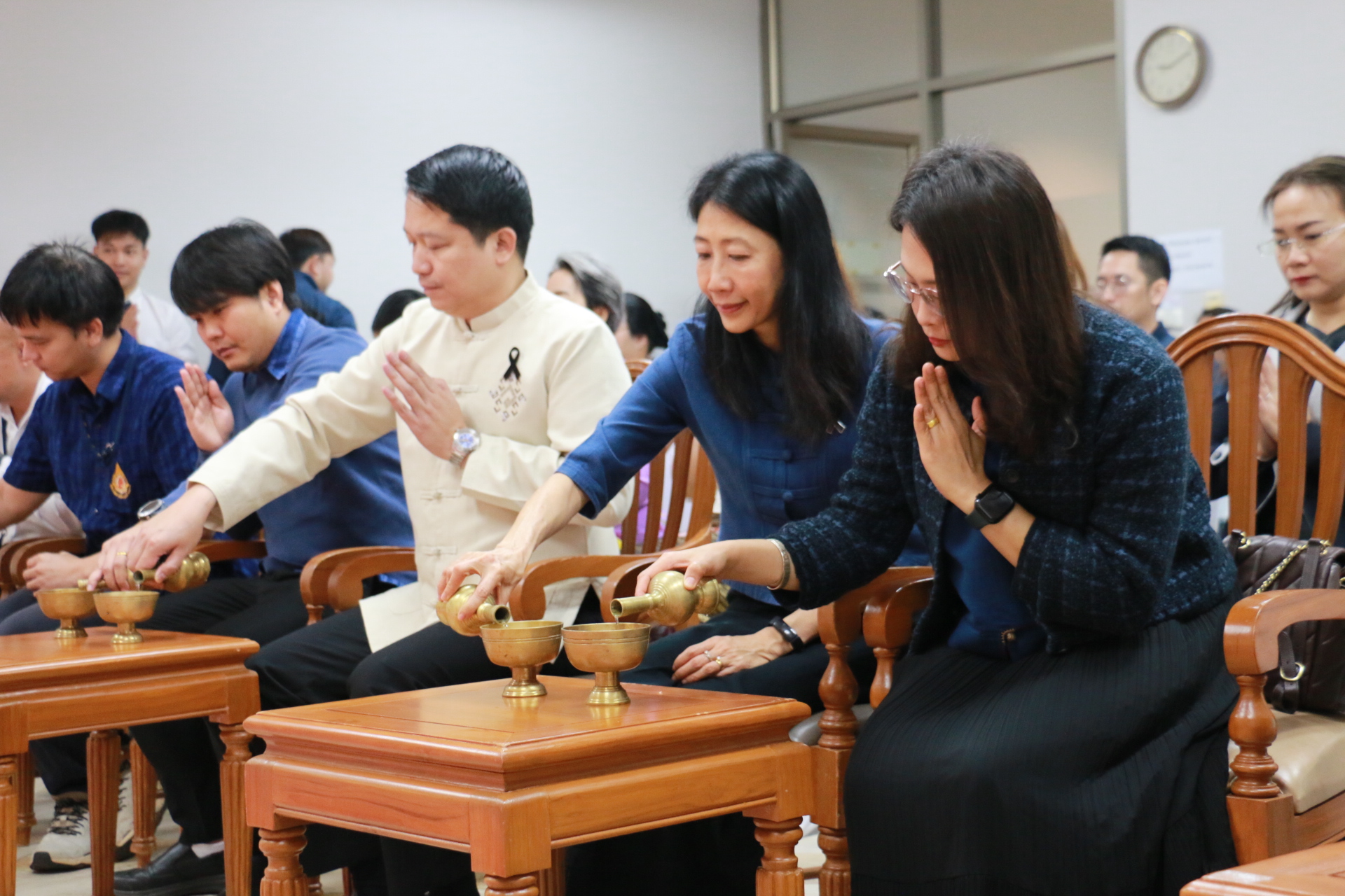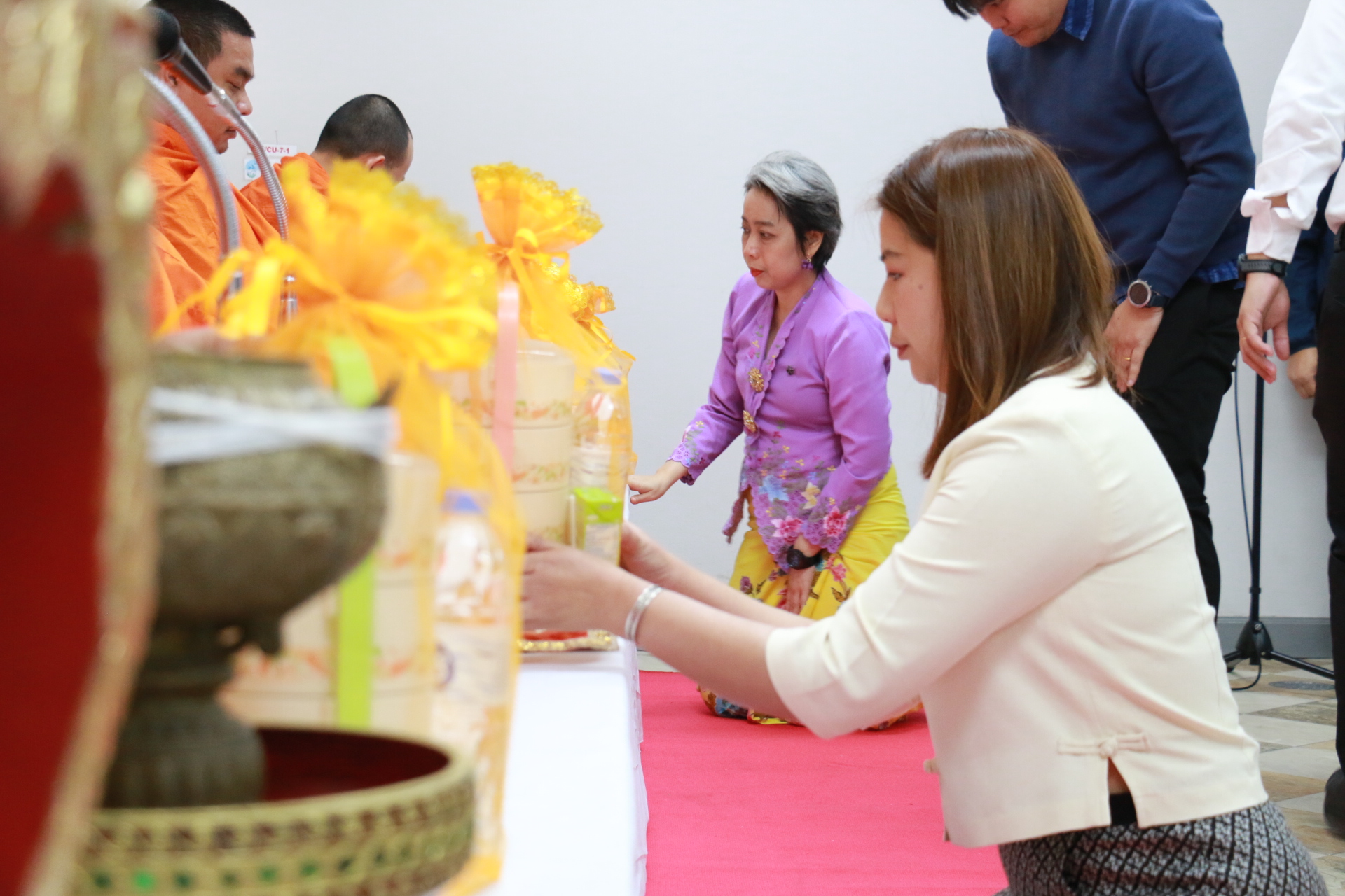 The ceremony included the offering of meals to Buddhist monks and the chanting of Buddhist prayers. Associate Professor Dr. Darunee Wattanasiriwech, Vice President of Mae Fah Luang University, graciously presided over the ceremony and led the lighting of incense in homage to the Triple Gem. Administrators, faculty members, staff, and students attended the ceremony in unity, creating a warm and auspicious atmosphere.