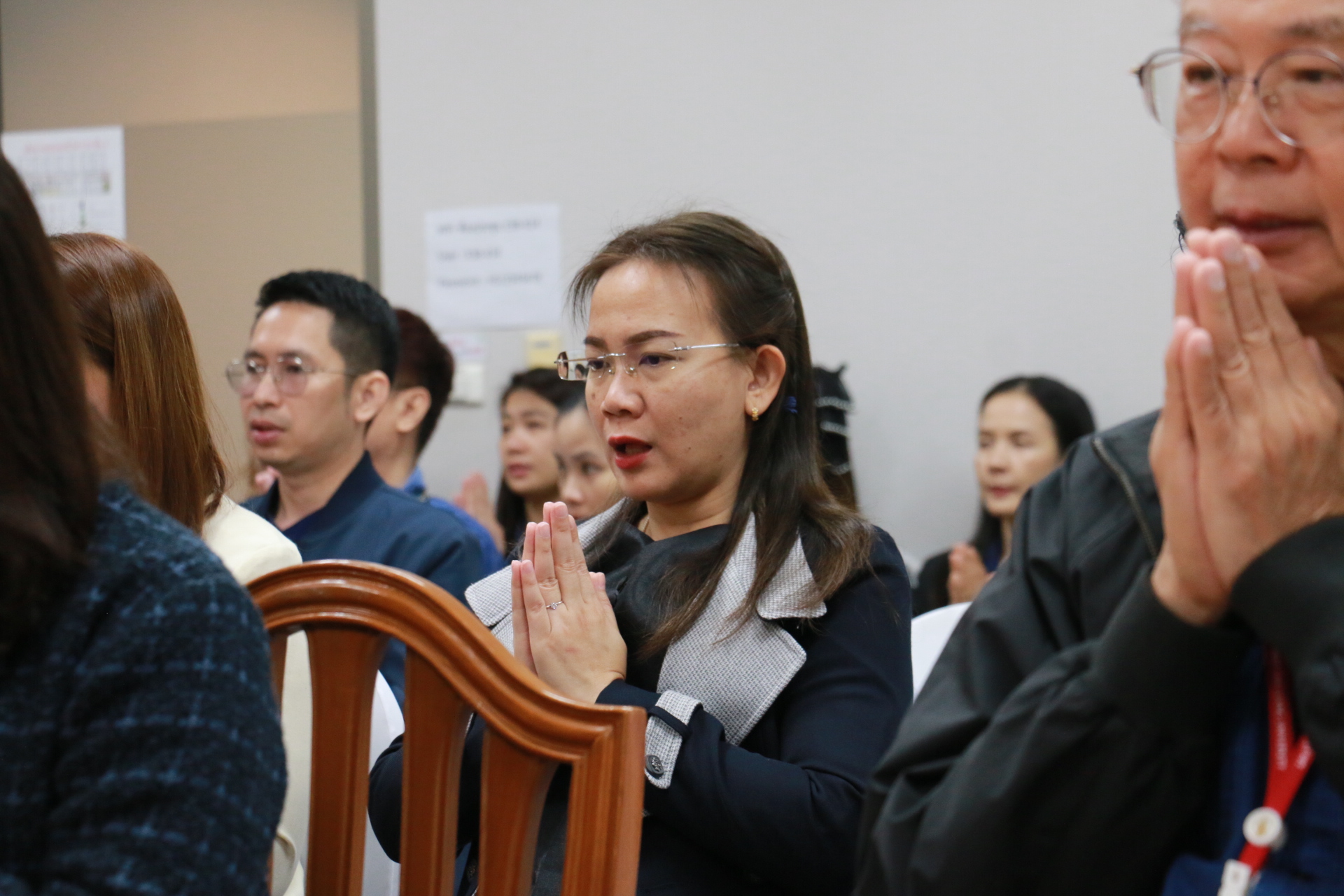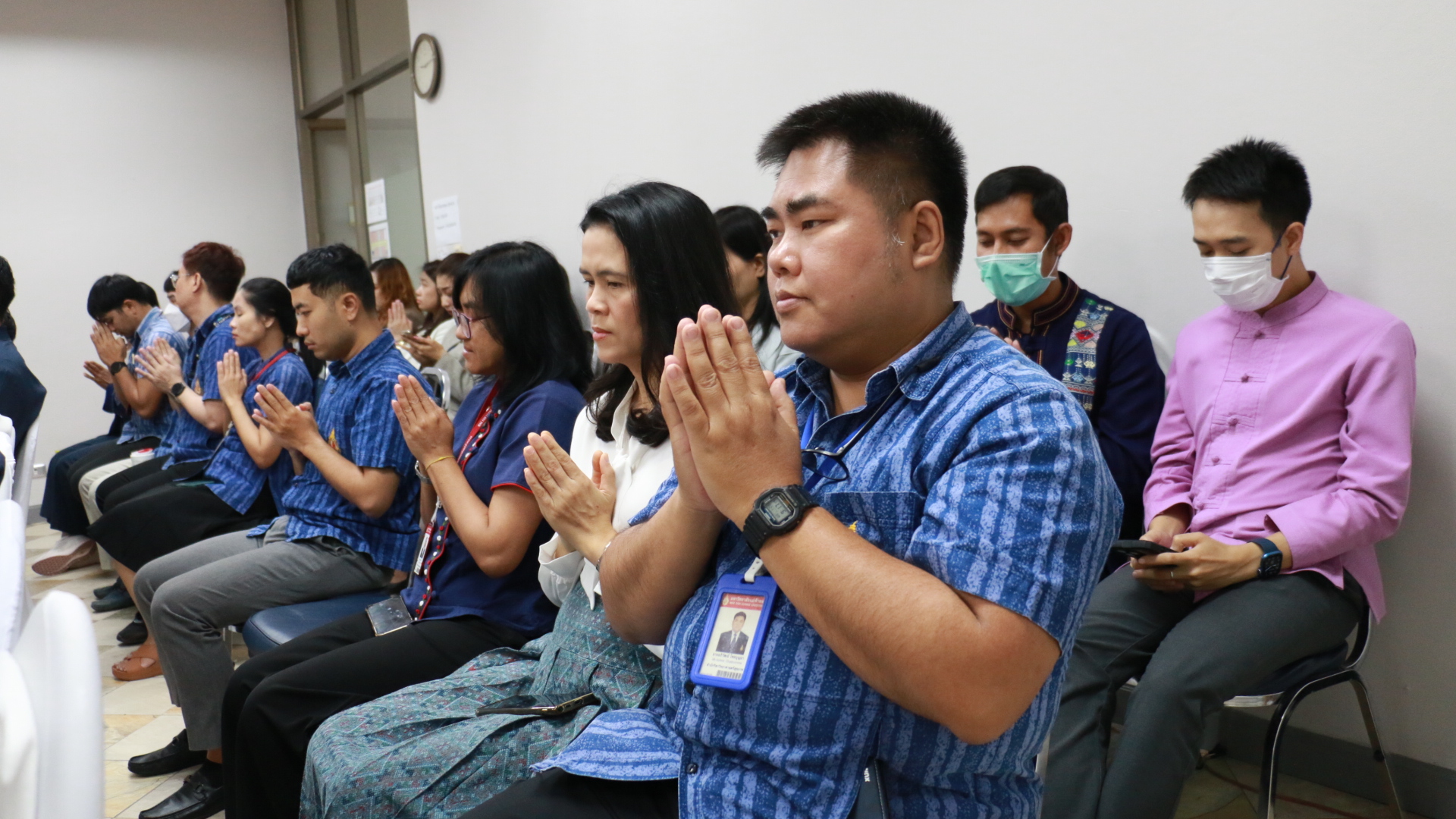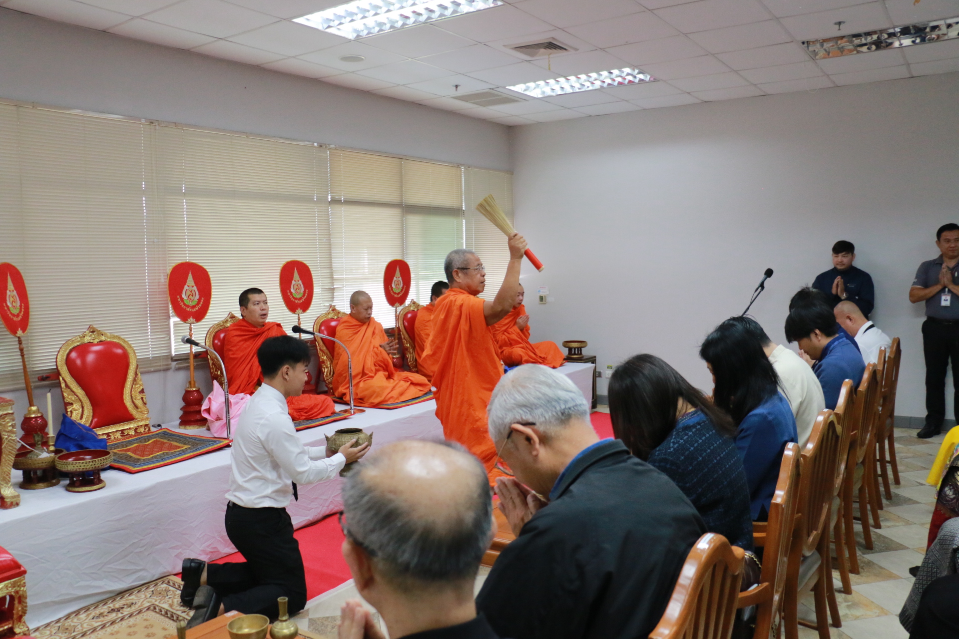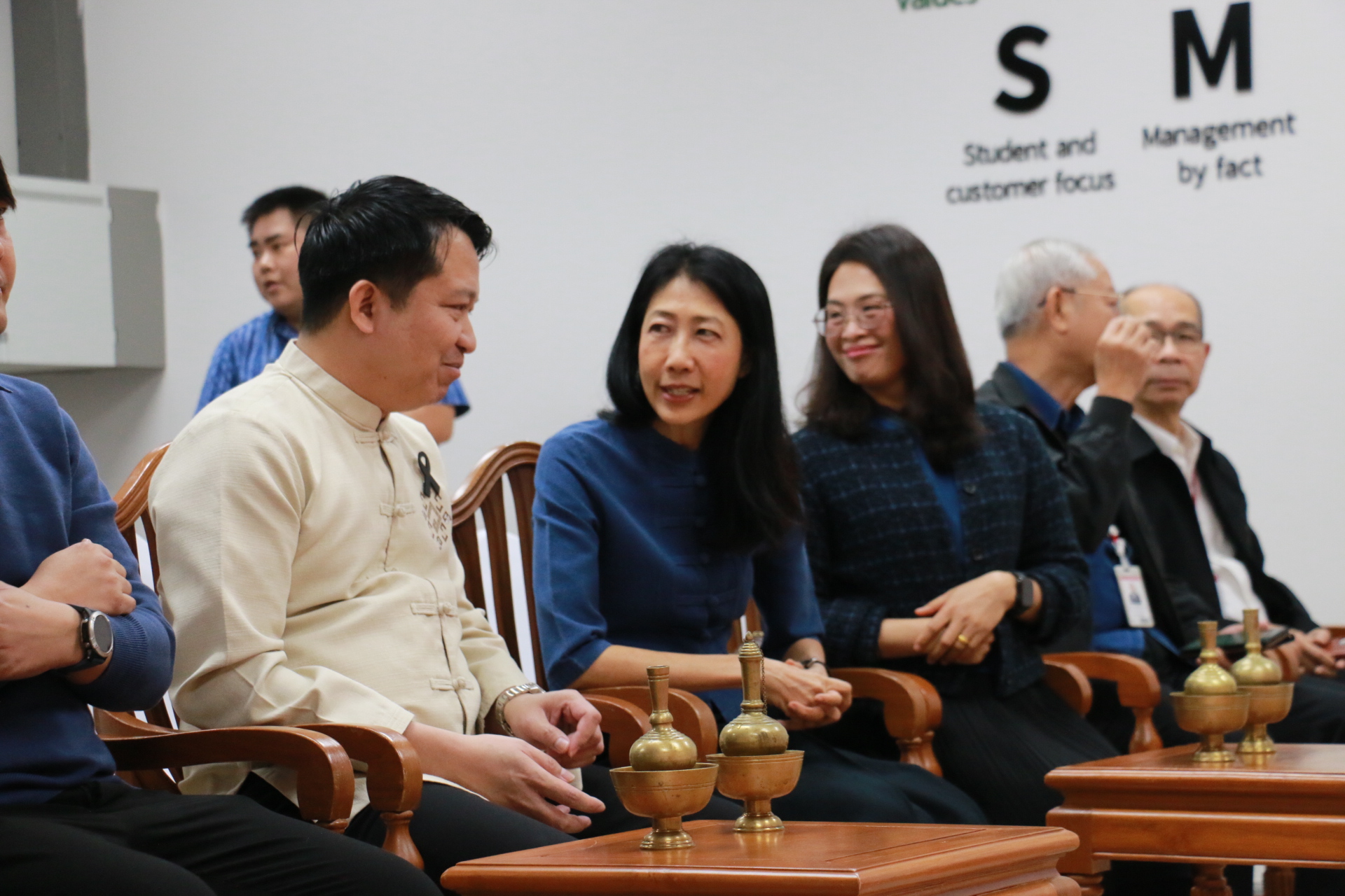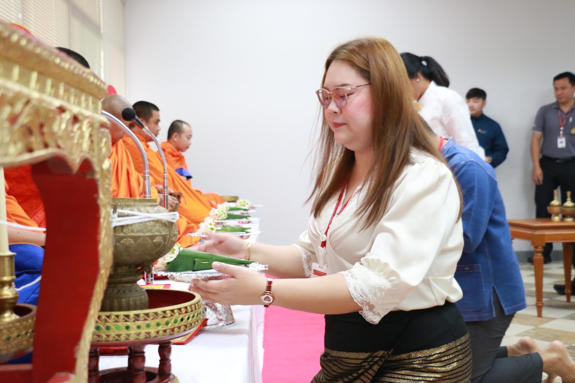 The ceremony included the offering of meals to Buddhist monks and the chanting of Buddhist prayers. Associate Professor Dr. Darunee Wattanasiriwech, Vice President of Mae Fah Luang University, graciously presided over the ceremony and led the lighting of incense in homage to the Triple Gem. Administrators, faculty members, staff, and students attended the ceremony in unity, creating a warm and auspicious atmosphere.
